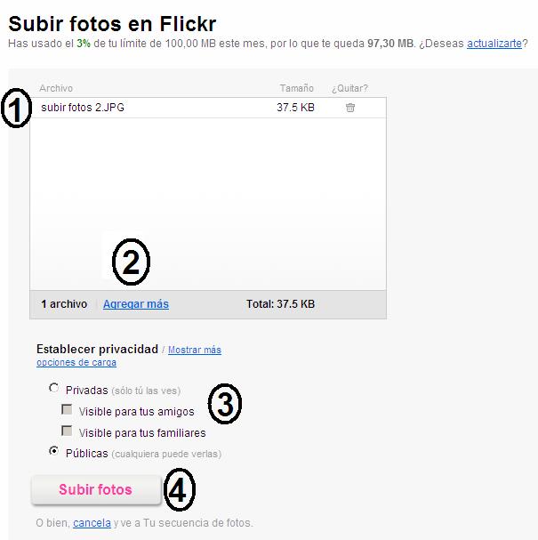 Subir una foto a tu galerÃa de Flickr es muy sencillo!!!